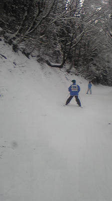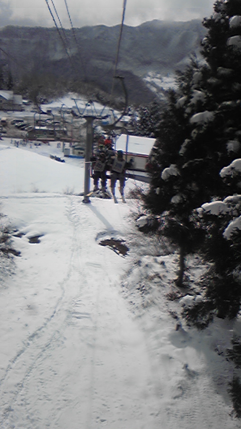 林間コースのリフトです。今村航大、小早川、永岡は中級コースをボーゲンで楽しんでいます。これから、更なる上の上級コースに挑みます。
